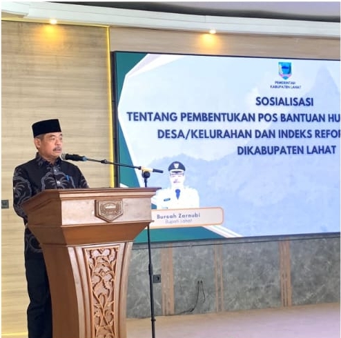 LAHAT — Bertempat di Pendopoan rumah Dinas Bupati Lahat di laksanakan sosialisasi pembentukan Pos Bantuan Hukum (Posbakum) desa/kelurahan dan Indeks Reformasi Hukum, pada Rabu(02/07/2025).