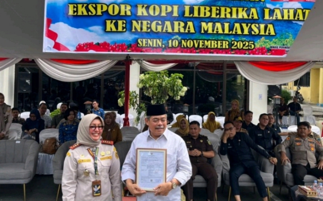 Lahat — Pemerintah Kabupaten Lahat menggelar acara pelepasan ekspor perdana kopi Liberika Lahat ke Malaysia, yang berlangsung di halaman Kantor Pemerintah Kabupaten (Pemkab) Lahat, Senin (10/11/2025).